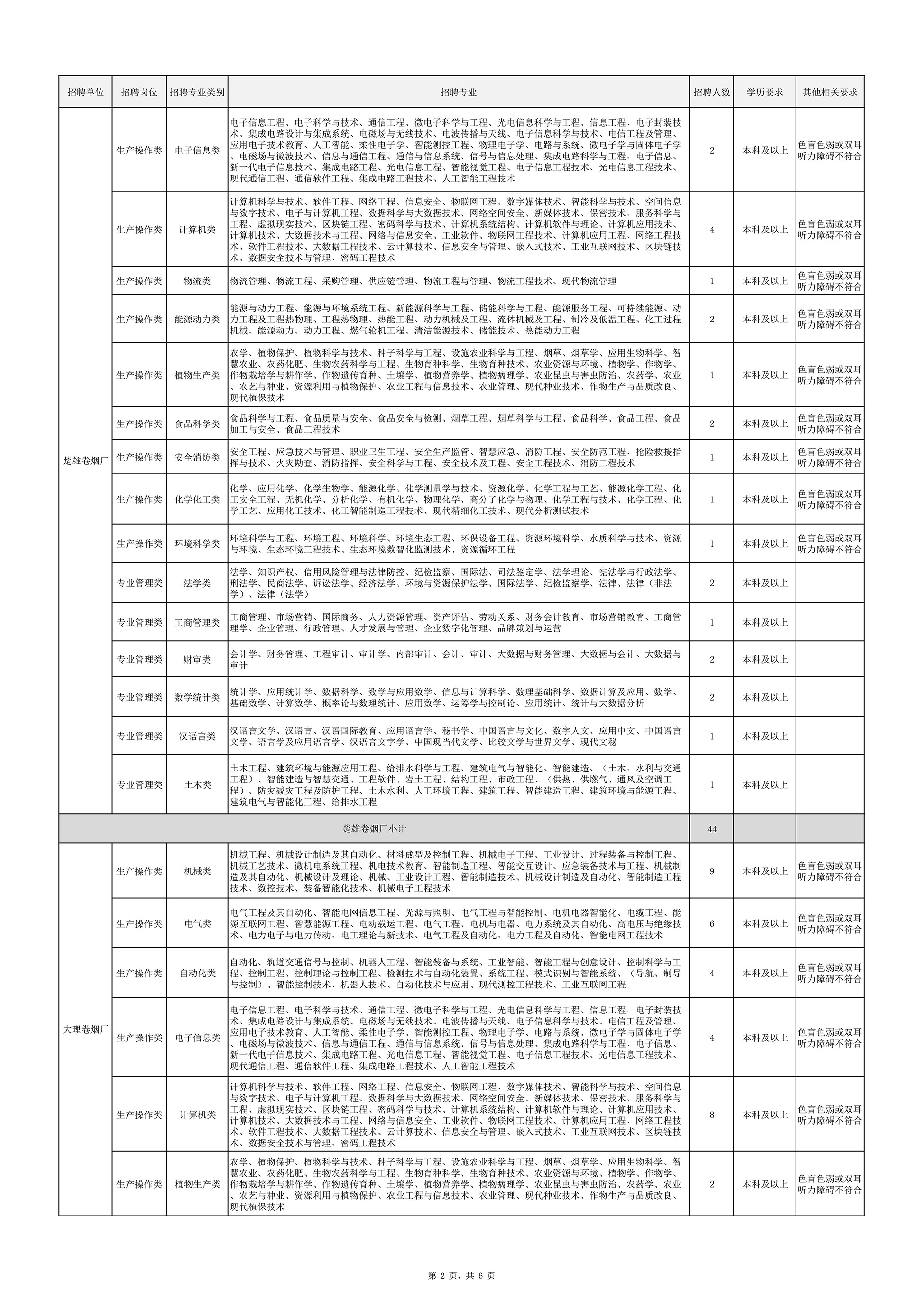 附件:1.云南中煙2026年畢業(yè)生招聘計劃表